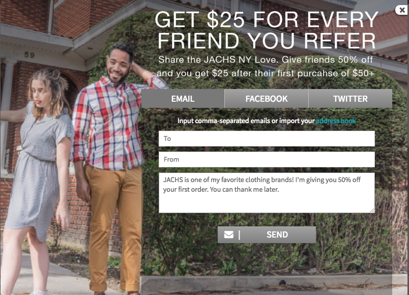 Clothing e-commerce store Jachs New York does a great job of integrating promotions into their e-commerce store to attract traffic, improve internal links, encourage conversions, and more.