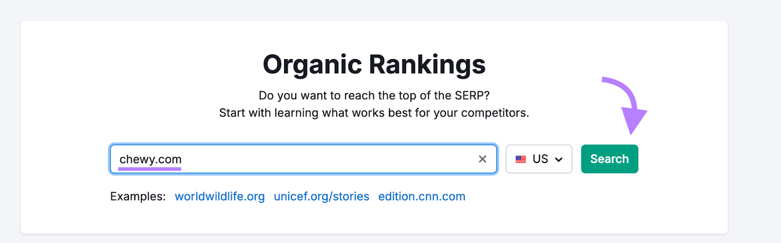 One of the quickest ways to find out is with Semrush’s Organic Rankings tool.